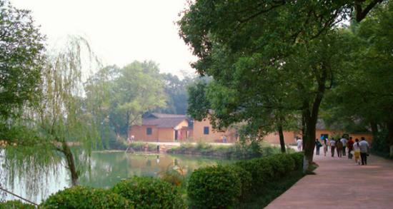 故居前面有一口水塘,房后有一抹低山,整個(gè)故居被一片郁郁蔥蔥的樹林年環(huán)抱。