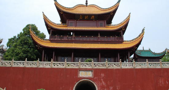 閱軍樓在兩晉、南北朝時被稱為巴陵城樓,到唐朝時期方始稱岳陽樓。